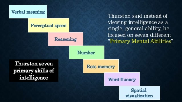 According to Thurston, there are about 7 dimensions of one's mental ability as listed below.